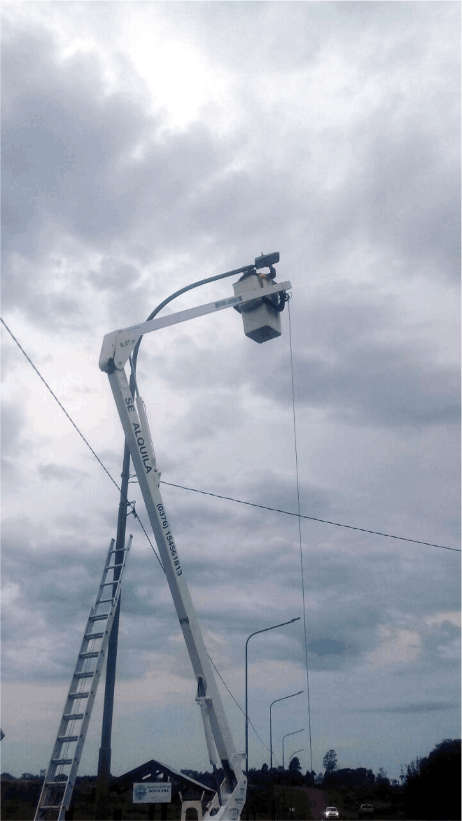 En la intersección de la Ruta Provincial Nº 103 y acceso al Parque Temático “Cruz de Santa Ana”, se reparó el sistema de alumbrado público, allí se reemplazaron los artefactos tradicionales por 17 luminarias tipo LED de 150 W y se efectúo el mantenimiento del tendido eléctrico.
