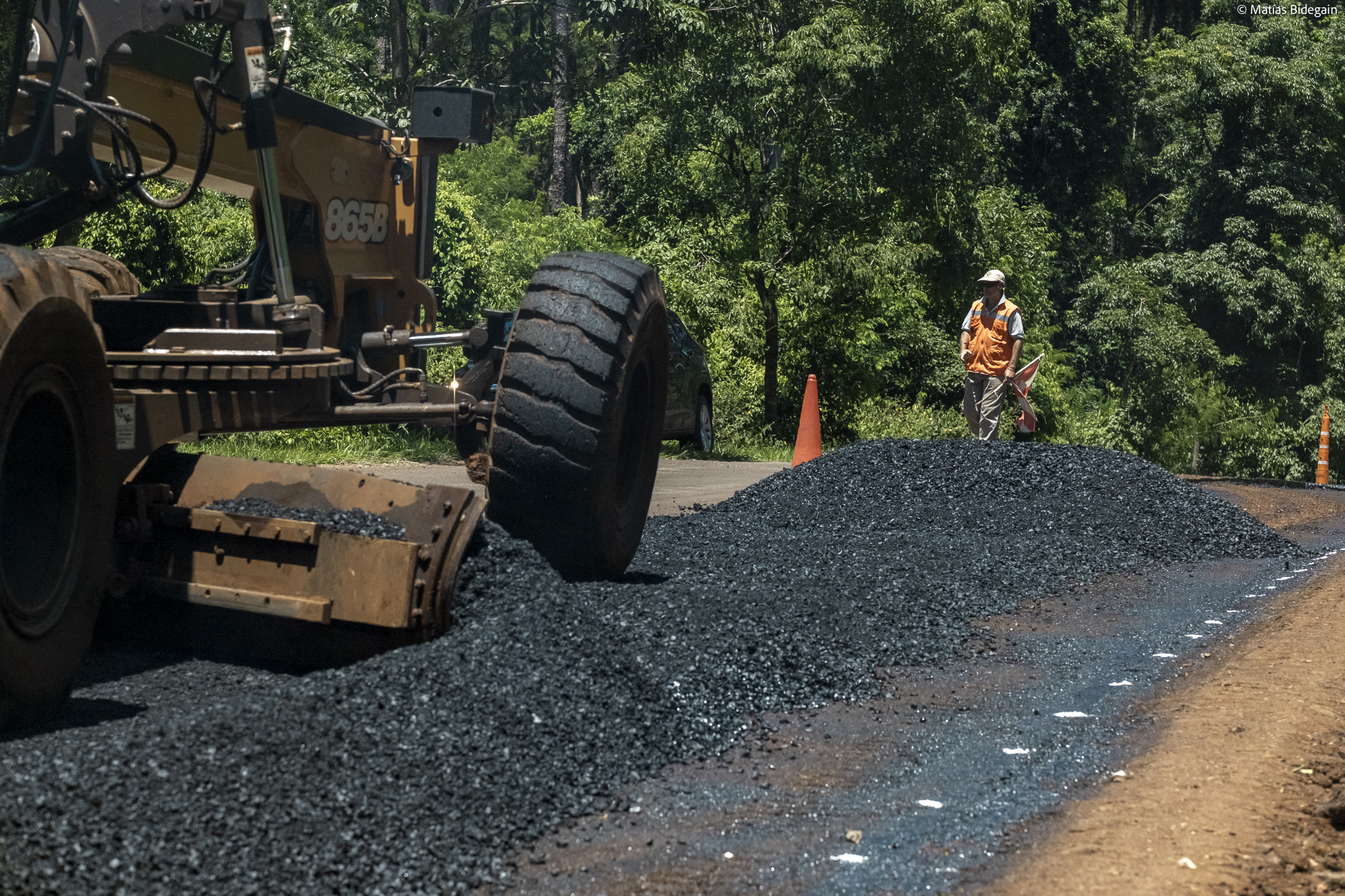 Junto con la Municipalidad Local, que aporta a la tarea, se está llevando adelante la reconstrucción de los sectores más dañados y reponiendo la capa asfáltica en gran parte de los poco más de 2.000 metros del camino de acceso hasta el portal de ingreso a uno de los atractivos turísticos naturales de mayor convocatoria en ese sector de Misiones.