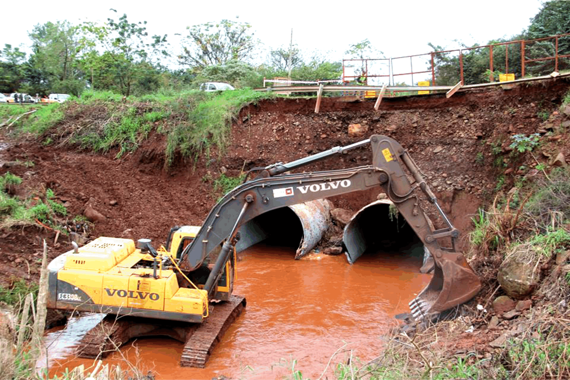 En Oberá: el Gobernador Hugo Passalacqua presenció el inicio de obras de saneamiento y canalización del Arroyo Mbotaby, ésta importante obra hídrica requiere la construcción de un conducto de hormigón tipo alcantarilla de grandes dimensiones para ampliar el volumen de escurrimiento sobre la Ruta Provincial Nº 5 que será ejecutada por Vialidad Provincial. La inversión prevista asciende a 23 millones de pesos.