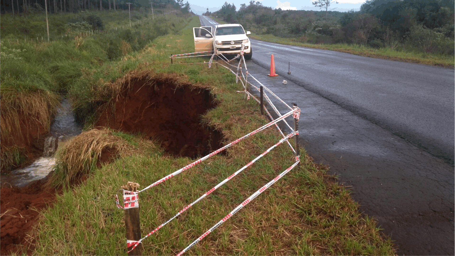 Ruta Provincial Nº 4: se repara la parte erosionada del terraplén de banquina en proximidades de una alcantarilla. Se trata de un sector ubicado en el tramo comprendido entre empalme RP Nº 103 y la localidad de Bonpland. El derrumbe no afecta la calzada principal. El lugar está debidamente señalizado.