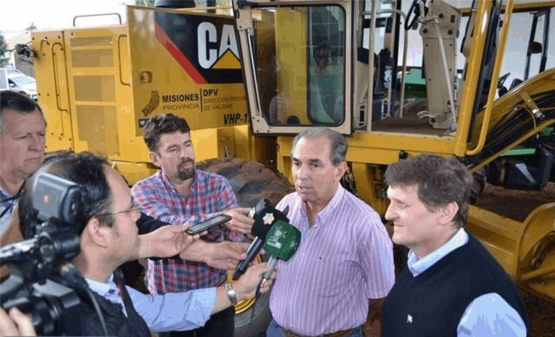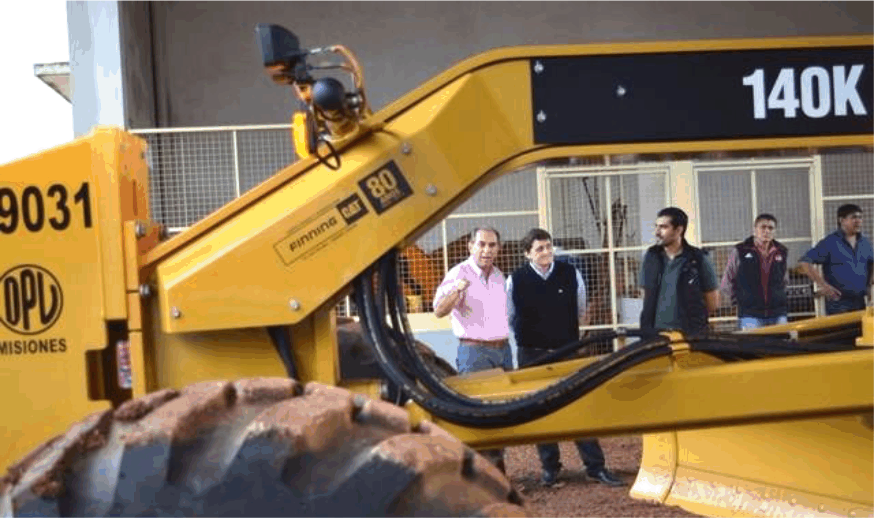 La Dirección Provincial de Vialidad continúa la distribución de nuevas motoniveladoras a las 15 Unidades Regionales propias. El presidente del Organismo Leonardo Stelatto y el ministro de Hacienda Adolfo Safrán participaron en Apóstoles de la recepción del nuevo equipo por parte de la Unidad Regional Nº 10.