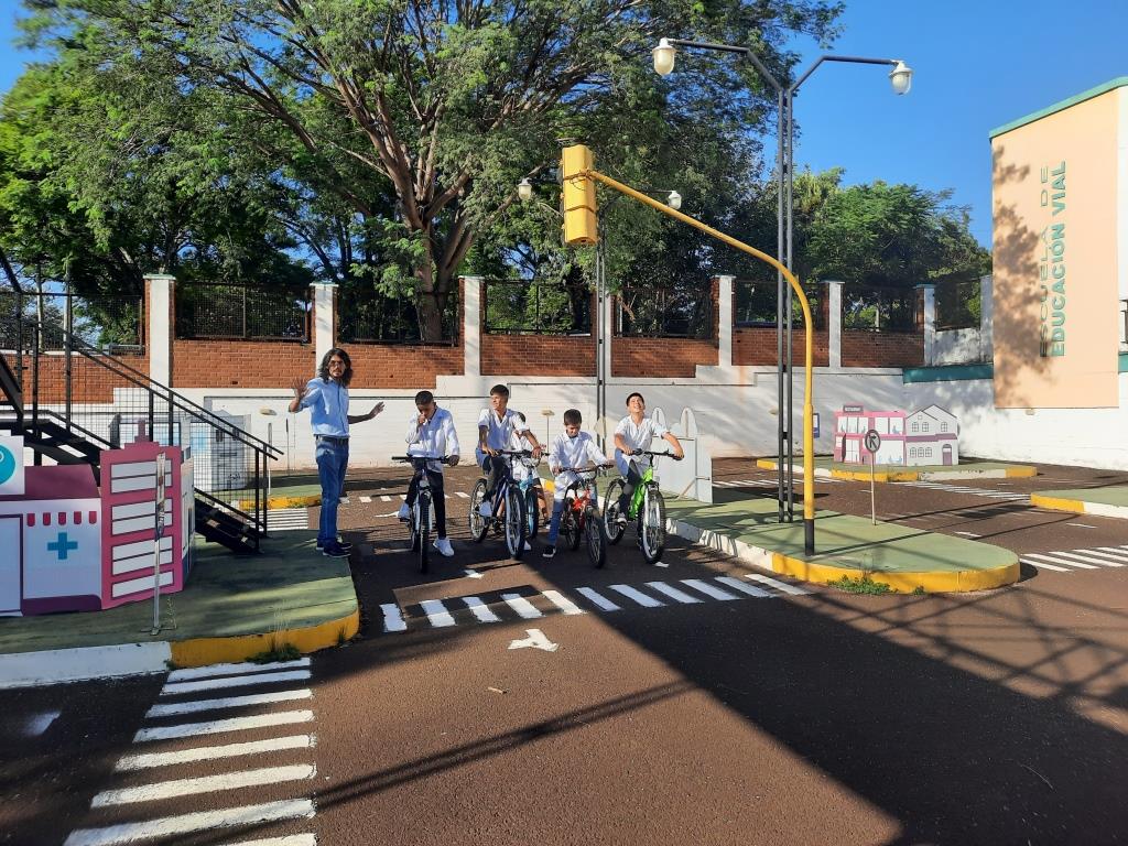 Los capacitadores de la Escuela de Educación Vial, perteneciente a Vialidad de Misiones, recibieron a estudiantes de 5º y 7º grado de la Escuela Nº 527 en dos jornadas distintas. Los niños y niñas participaron de las instancias de aprendizaje tanto teórica, donde se desarrollan temas como derechos y obligaciones del peatón y conductores en la vía pública; como práctica, donde pasaron a la pista vial montada en las instalaciones de la Escuela, donde ponen en práctica lo aprendido, tanto para el rol de peatones como de ciclistas.