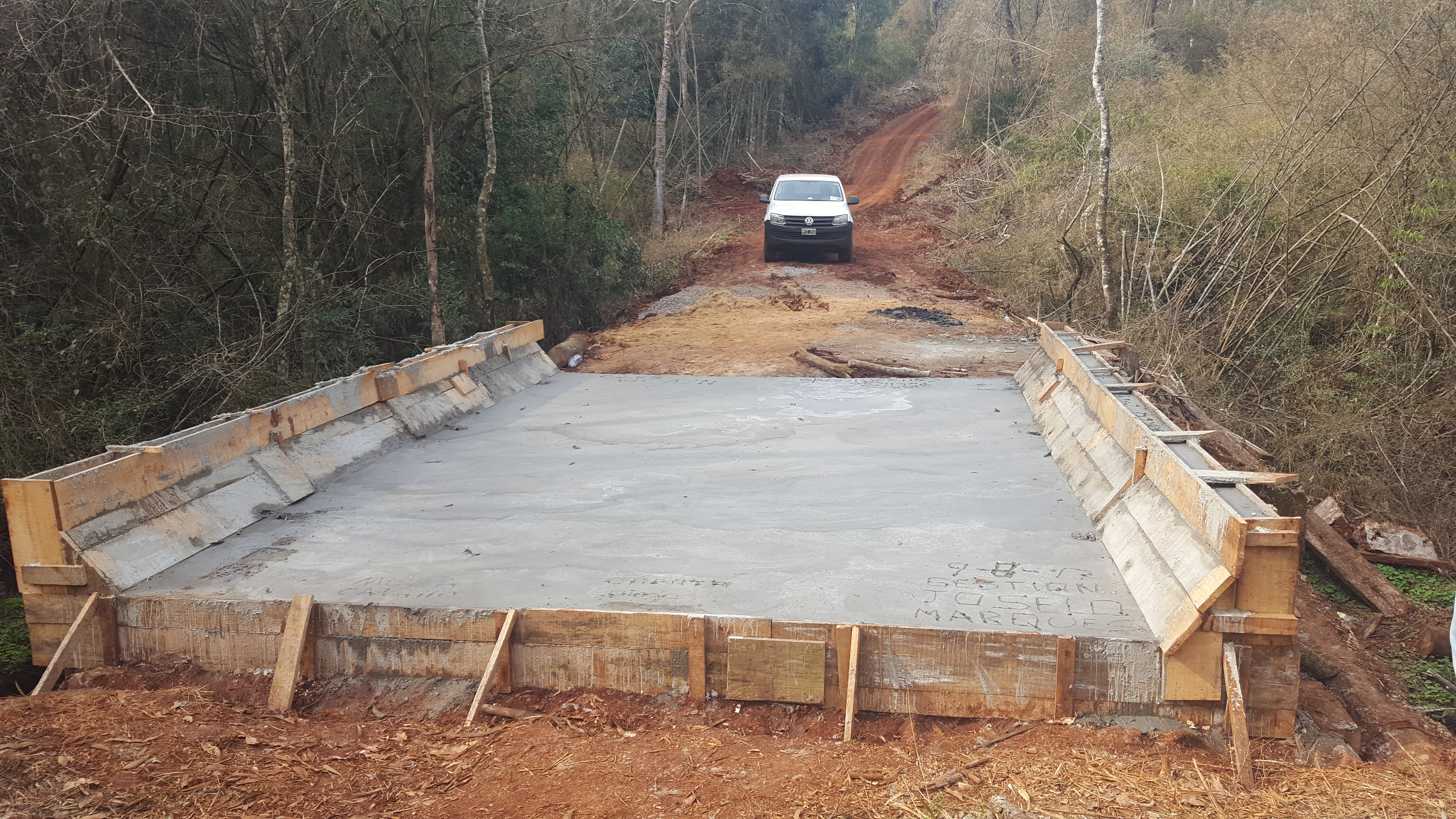 En el marco del Programa “100 Puentes” se registra un elevado porcentaje de obra en la construcción de varios viaductos: a) En Campo Ramón se realizó el cambio de tablero del puente sobre el Arroyo Mataco, obra que permite recuperar la conexión con la red vial pavimentada, beneficiando a numerosos productores de la zona. b) En Apóstoles se levantan las bases del nuevo puente sobre el Arroyo Chimiray Miní. c) En San Vicente toma forma la flamante estructura del puente Guiray, que brindará acceso seguro a la Comunidad Aborigen afincada a orillas del arroyo homónimo.-