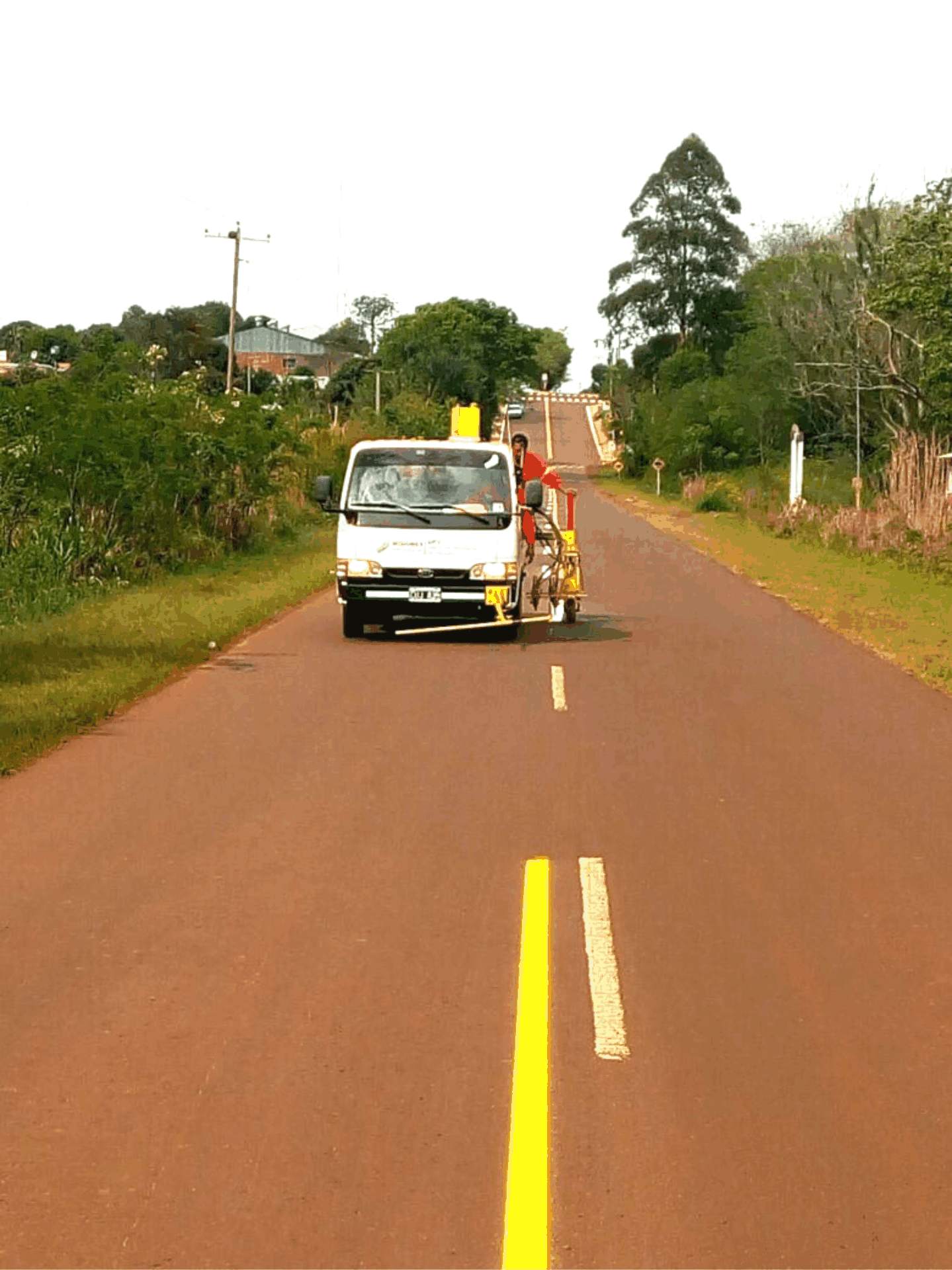 Con el objetivo de aumentar las condiciones de seguridad vial, la Dirección Provincial de Vialidad se encuentra realizando trabajos de señalización, tanto vertical como horizontal, de la red pavimentada. El señalamiento horizontal consiste en la demarcación del doble eje central en color amarillo y/o blanco en bastones intermitentes, más el pintado de los bordes delimitadores de la carpeta asfáltica en color blanco, para ello se utiliza pintura en frío con base acrílica, material de alta resistencia y durabilidad.