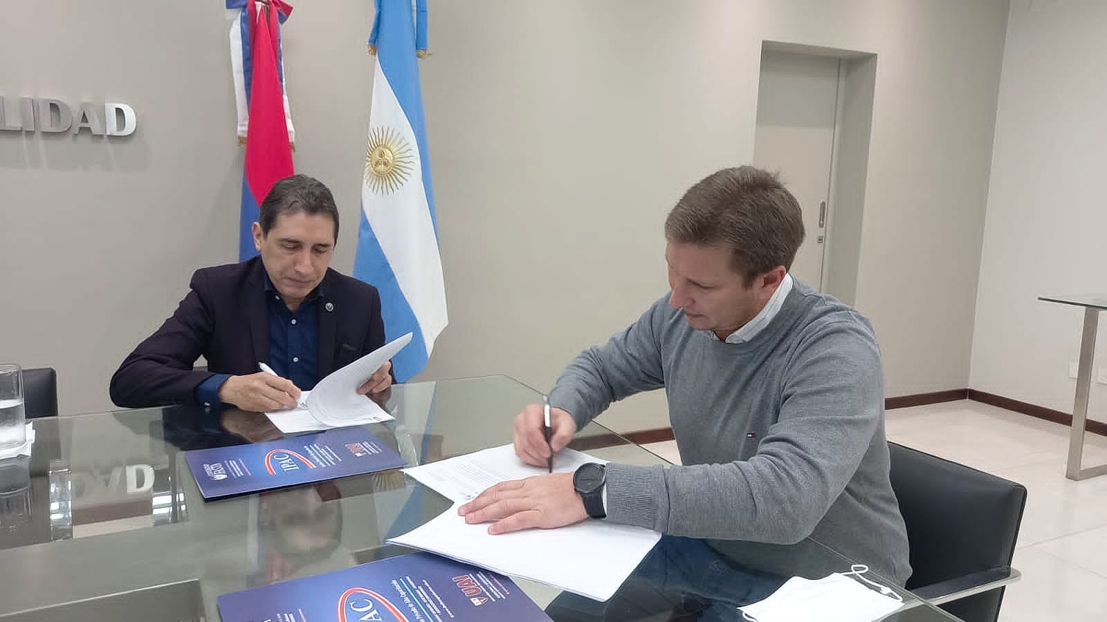 En Casa Central de la Dirección Provincial de Vialidad Misiones, el presidente de la DPV, Ingeniero Sebastián Macias y el Dr. Claudio Rodríguez Agüero, de la Unidad de A