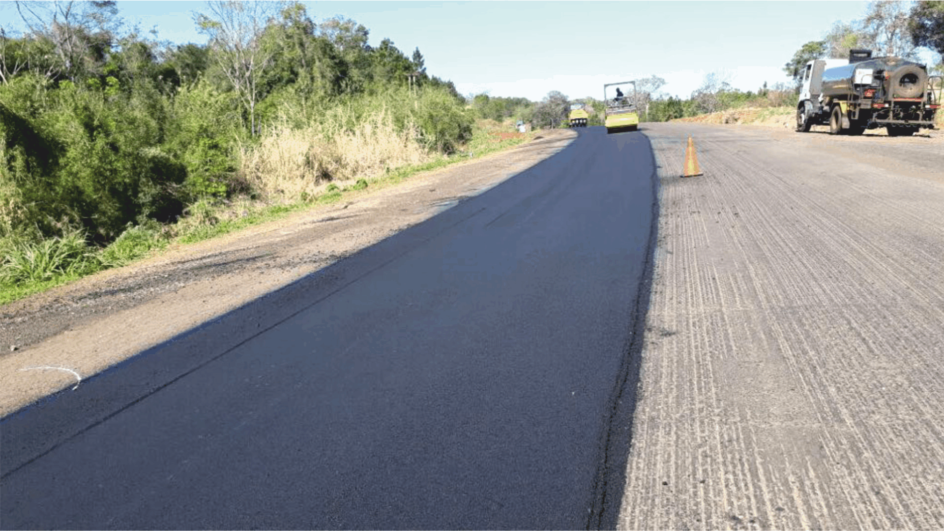 Con un avance estimado del 60 por ciento de obra, continúan a buen ritmo los trabajos de bacheo y repavimentación de calzada en la RP Nº 4 tramo de 37 kilómetros desde empalm