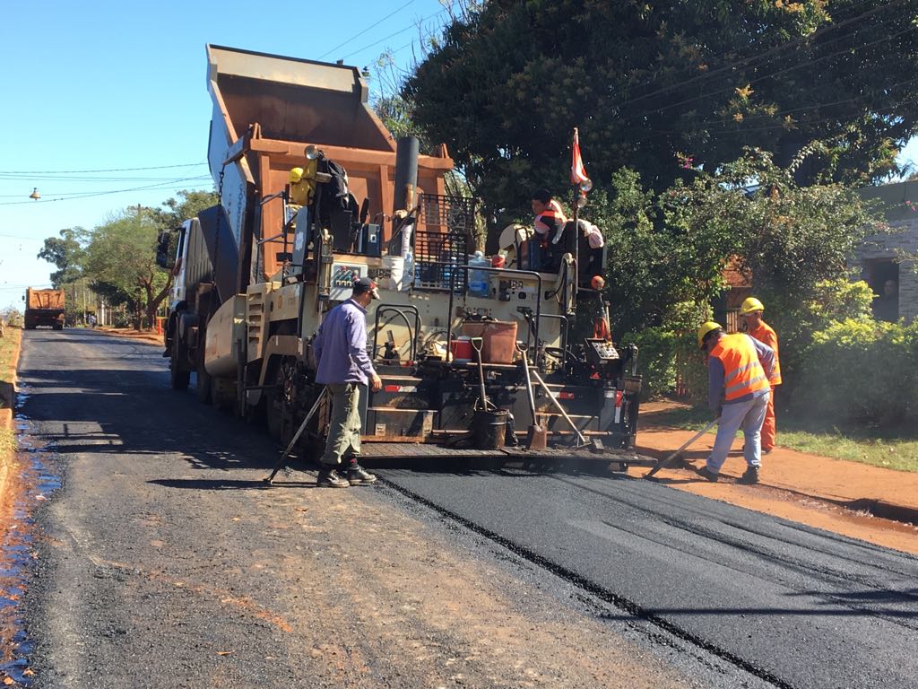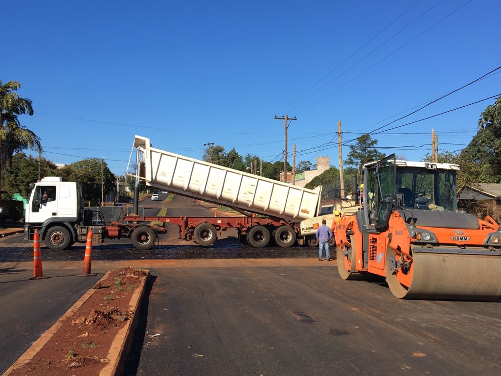 Dando continuidad al Plan Pavimento sobre empedrado en la ciudad de Posadas, la Dirección Provincial de Vialidad está trabajando para mejorar la trama vial, distribuyendo mezcla asf&aacu
