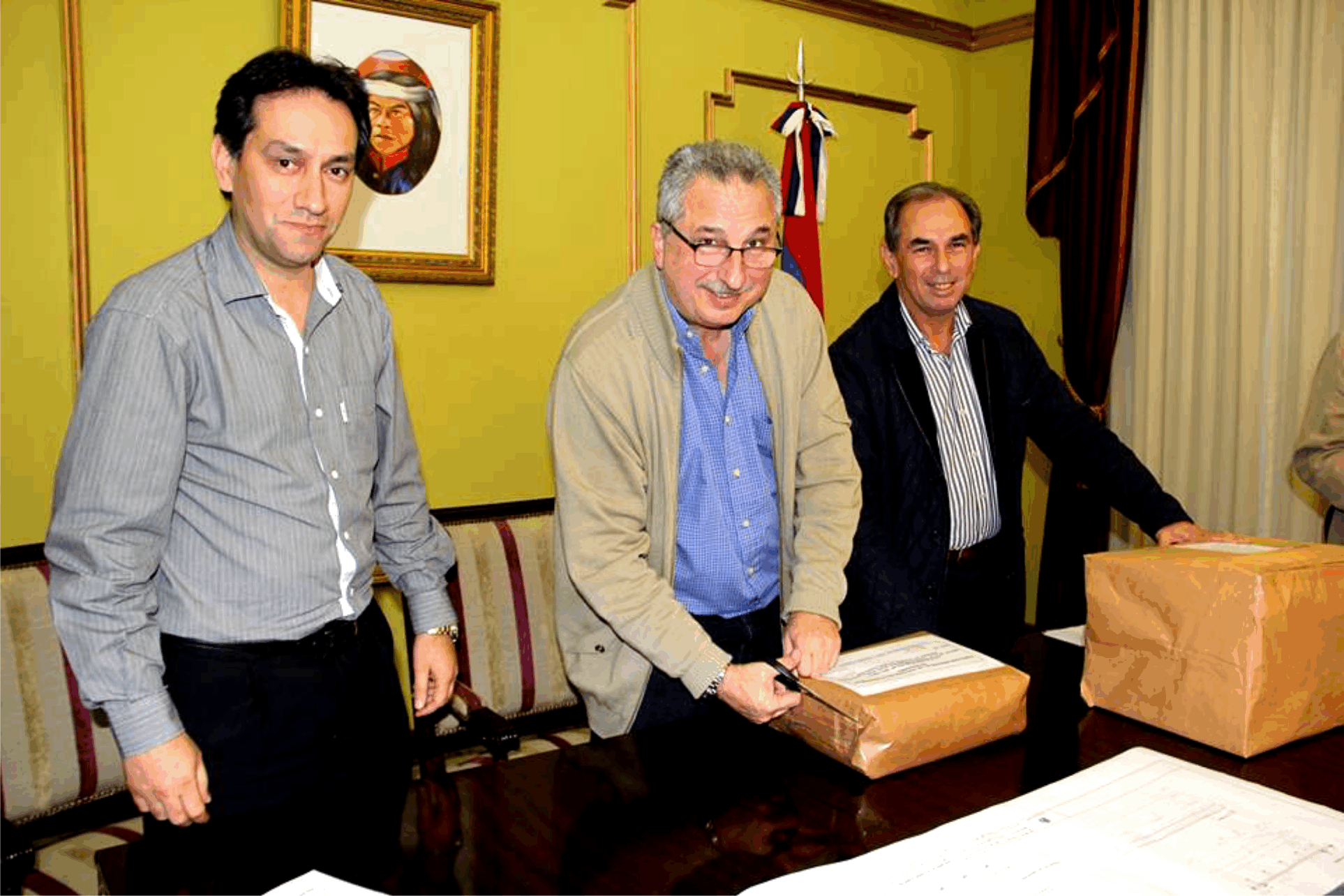 El gobernador Hugo Passalacqua, el presidente de Vialidad Provincial Ing. Leonardo Stelatto y funcionarios Nacionales, fi